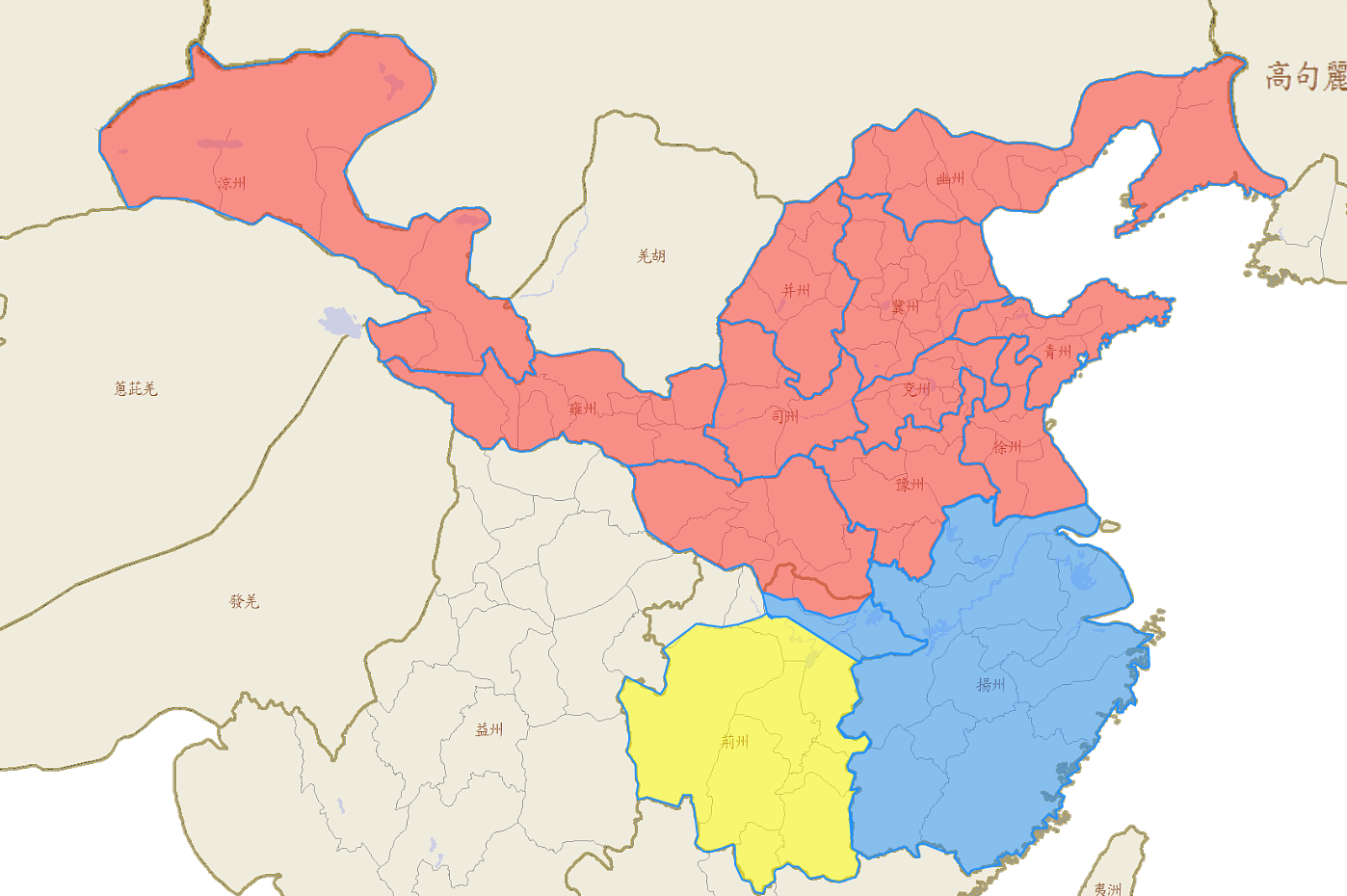 曹操(北方):从东汉献帝初平二年至建安十三年(公元191-208年),曹操先后平定黄巾军,击败袁术、陶谦,灭吕布(收复徐州兖州),迎天子入许都,奉天子以令不臣,与袁绍决战官渡后平定河北,公元207年北讨乌桓,208年返回许都,彻底统一北方。期间收复各地疆土及兵马,其中以整编黄巾军的“青州军”为后续作战的主力,政治上挟天子令诸侯,军事政治的高度统一,让曹操有实力去统一全国,随即于公元208年南下,欲与孙吴政权一决高下。